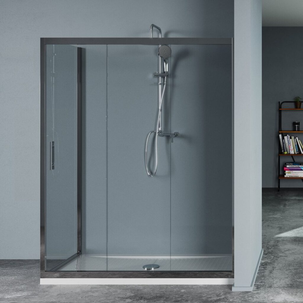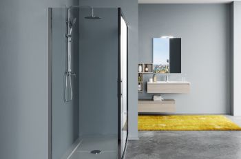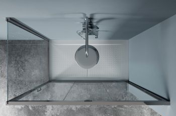- Per formare un box a tre lati si abbina con una parete fissa, fissata alla parete scorrevole con un profilo di guarnizione.